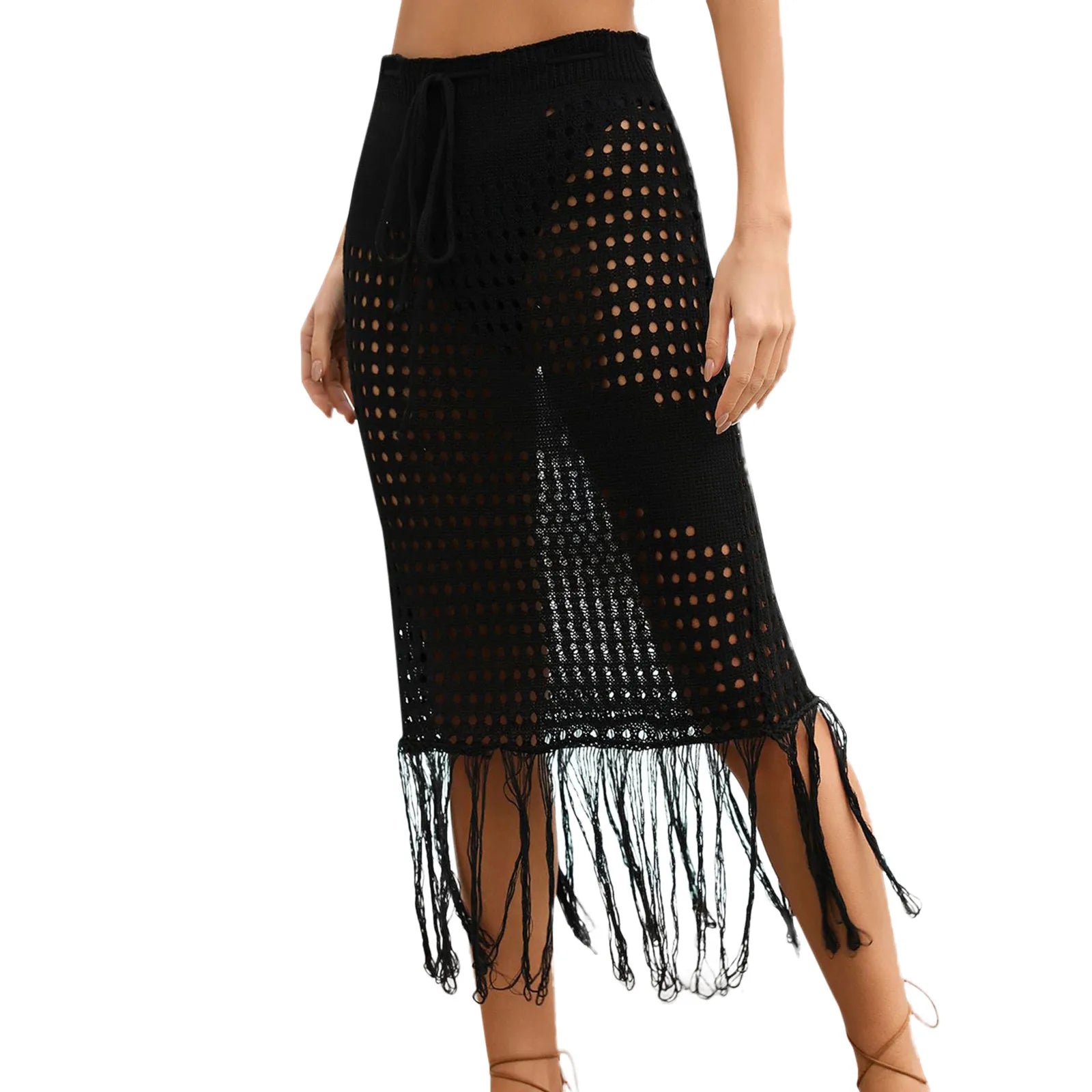 Womens Summer Knitwear Hollowed Out Fashionable Beach Bikini Swimsuit Blouse Dress Beach Skirt