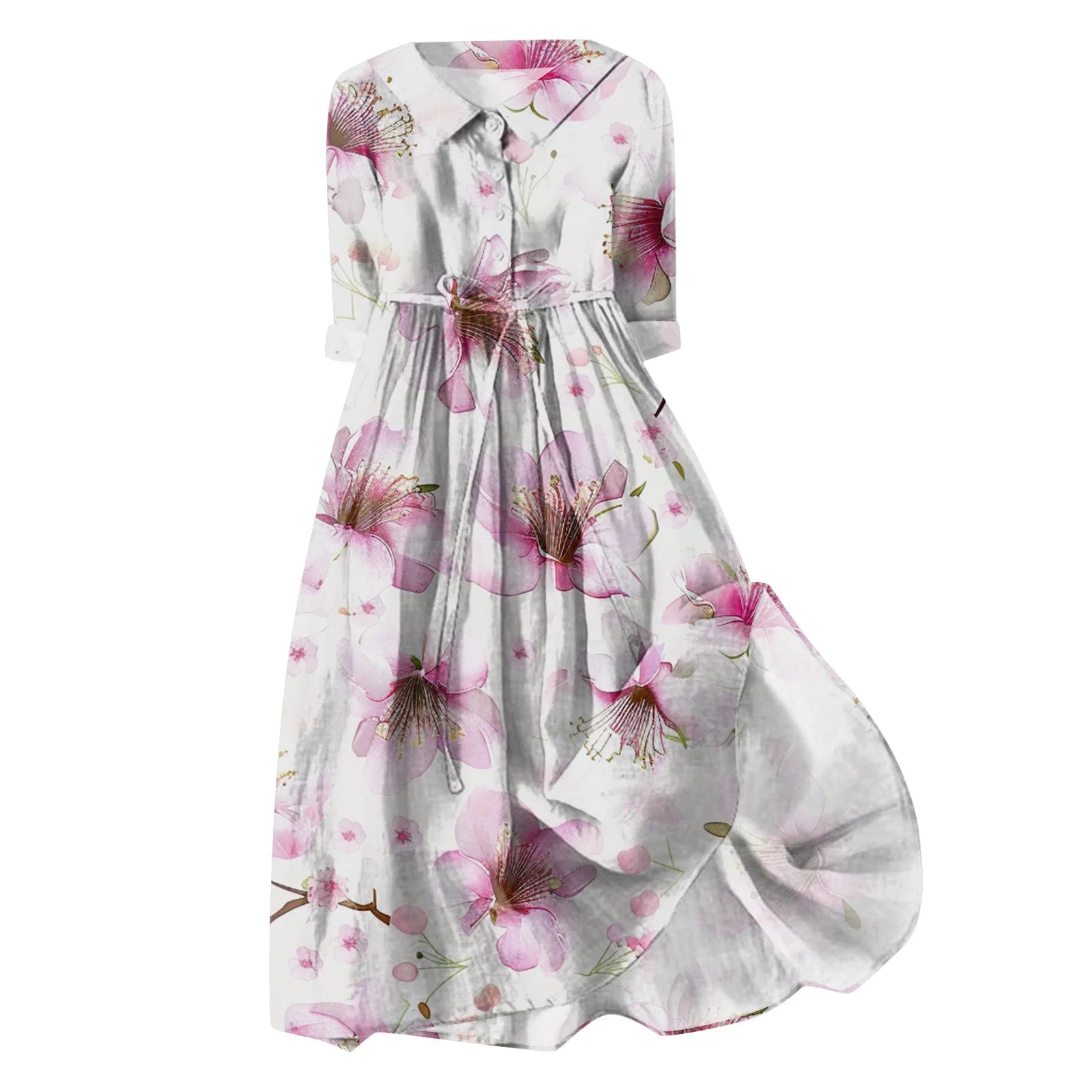 Aline Summer Dresses For Women Women Bohemian Summer Dress Long Sleeve Plain Floral A Line Womens Casual Long Sleeve Dress