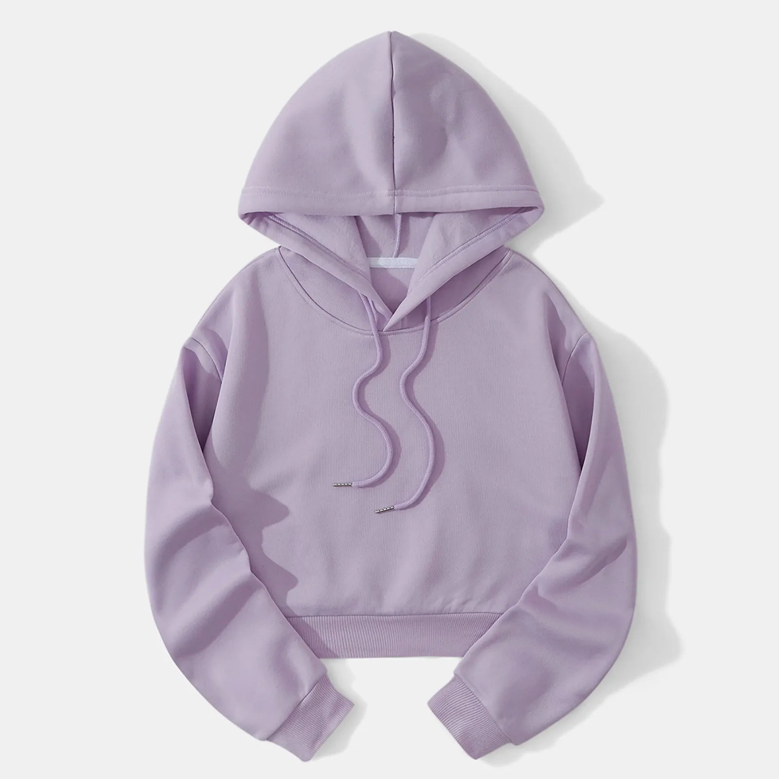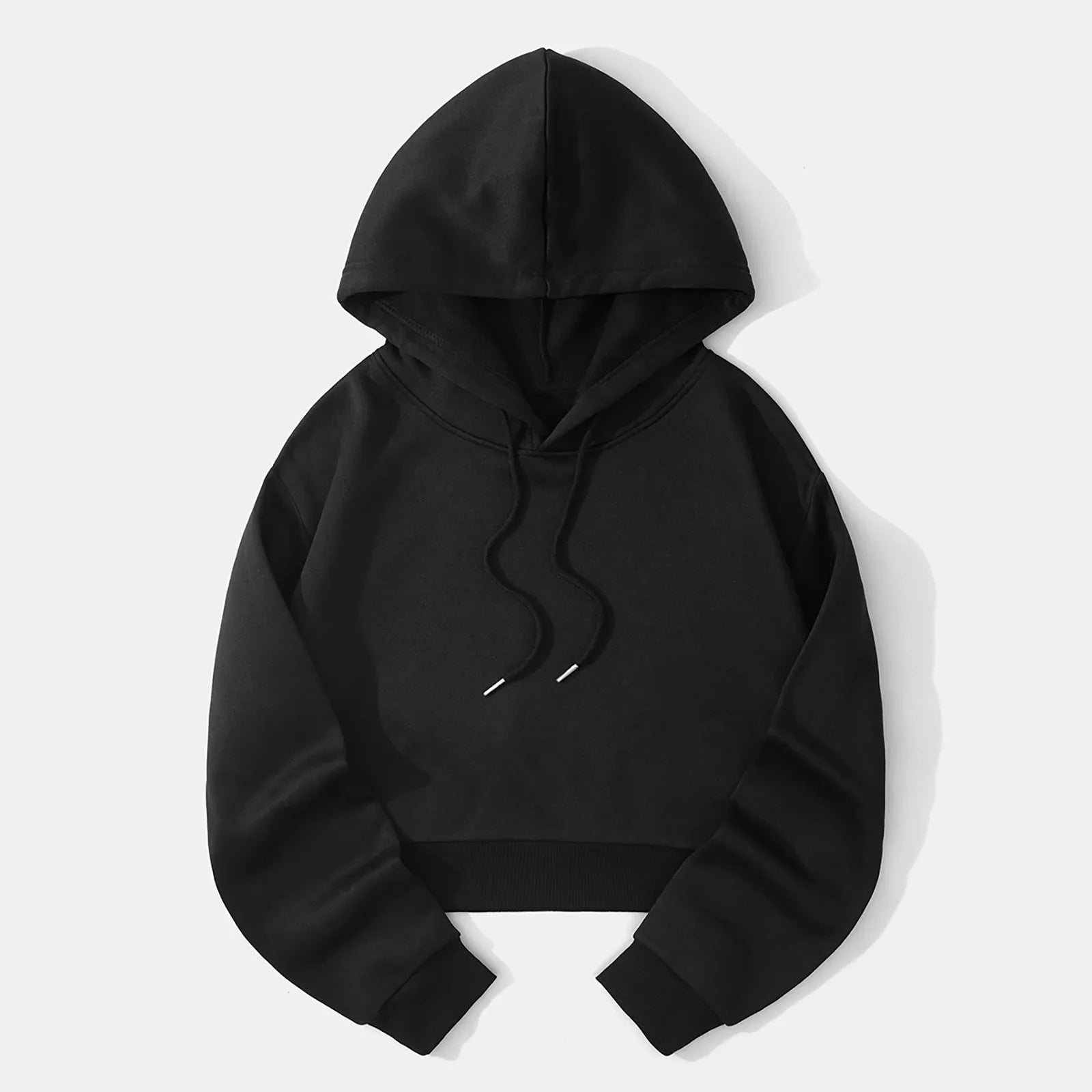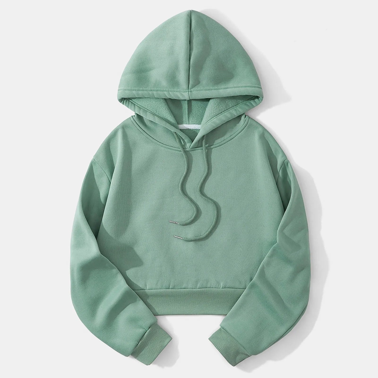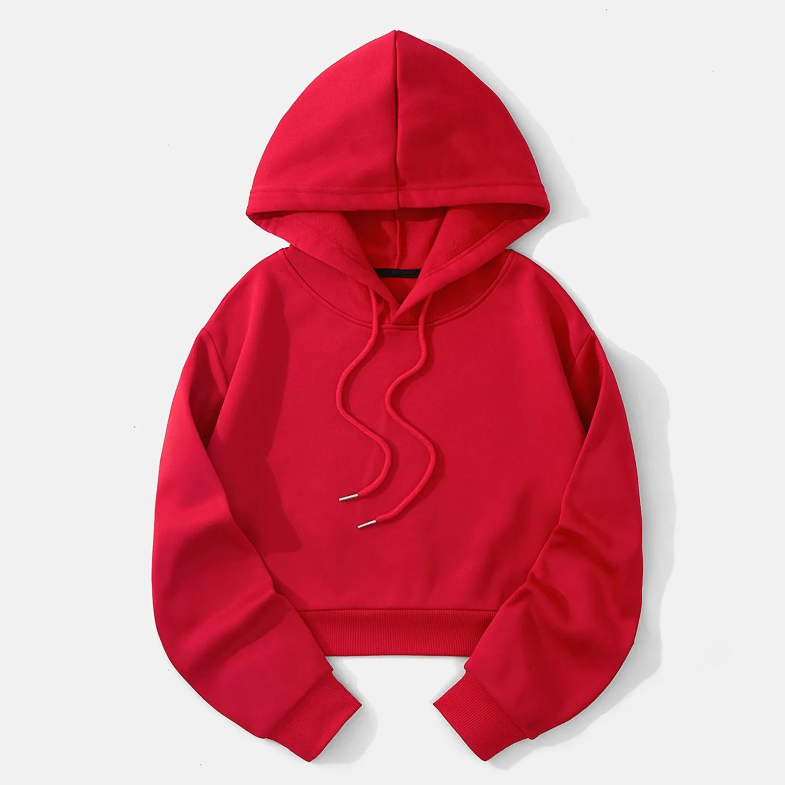 Casual Solid Color Women Cropped Hoodie Sport Style Fleece Warm Sweatshirt Fashion Casual Loose Brand Hoody Streetwear