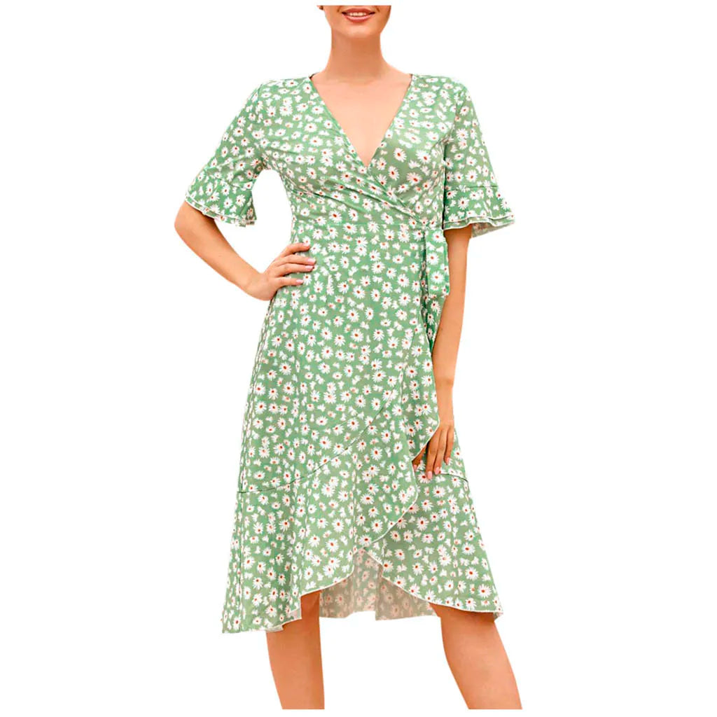 Comfy Summer Dresses For Women Women Sexy V Neck Short Sleeve Lace Up Floral Print Flowy Dresses For Elderly Women Winter