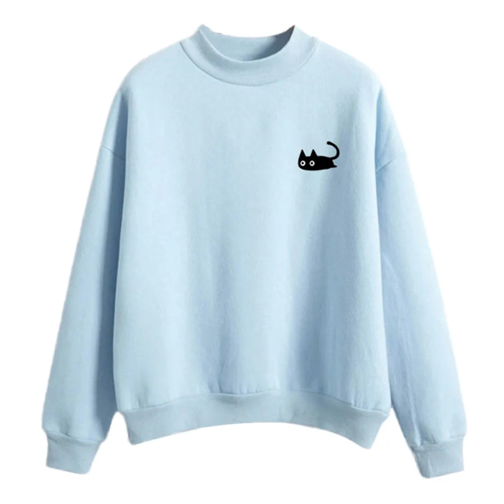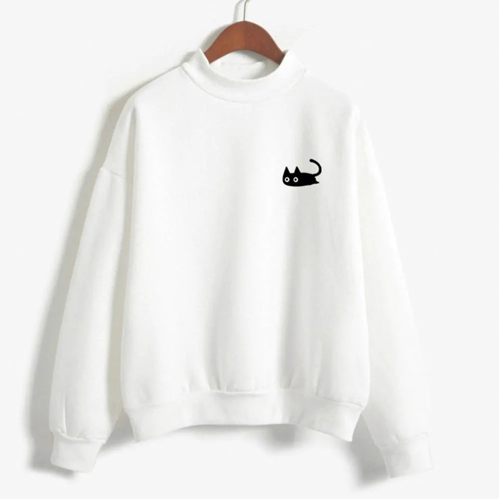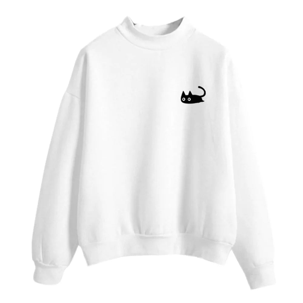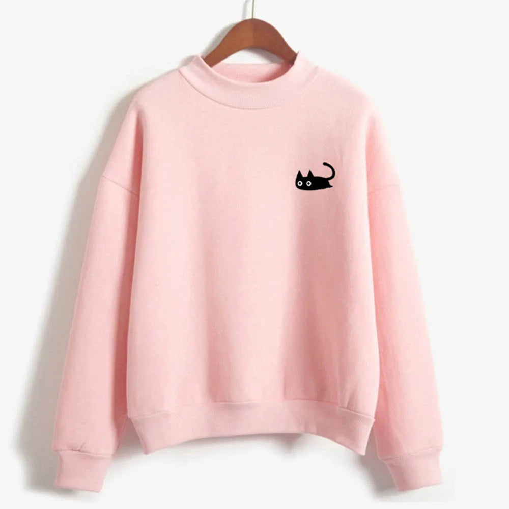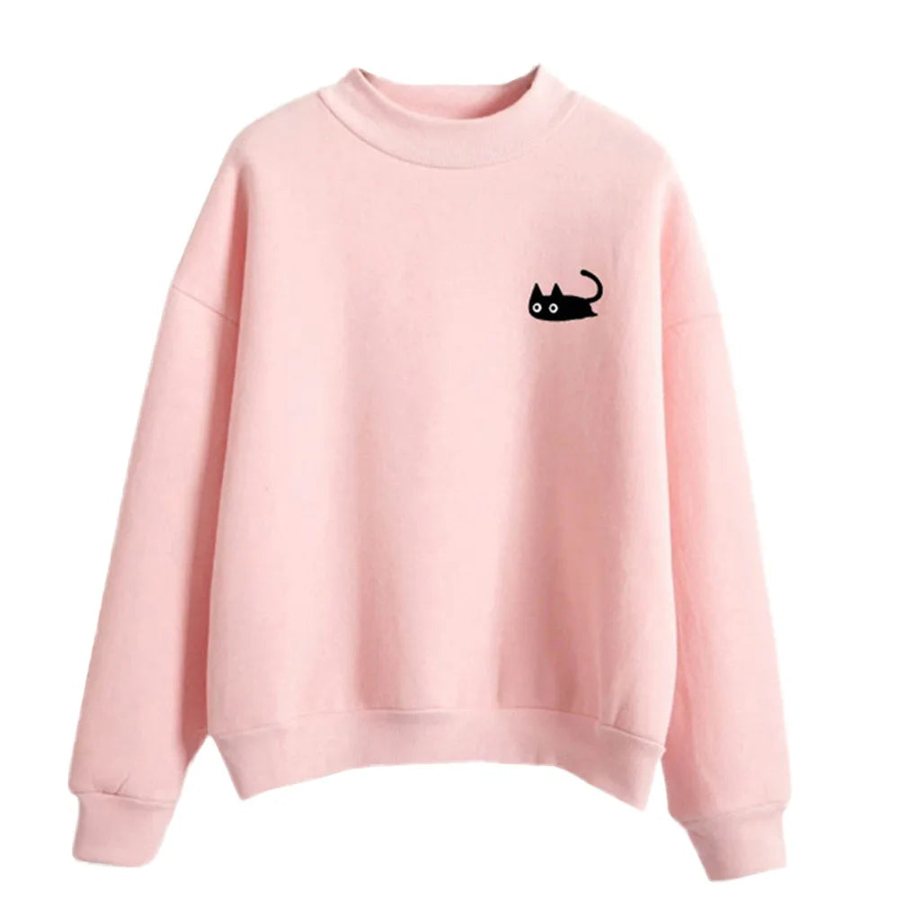Crewneck Fleece Streetwear Casual Cute Cat Printed Sweatshirt Top Long Sleeve Hip Hop Oversized Hoody Casual Loose Sweatshirt