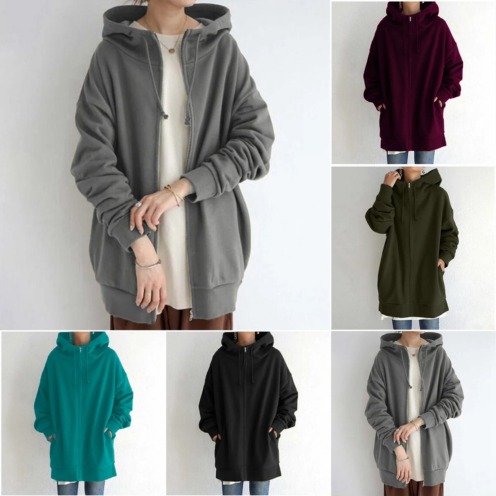 Fashion Harajuku Clothing Solid Color Zippered Hooded Over Size Y2k Retro Streetwear Keep Warm Lady Autumn Hoodie Sudadera Mujer