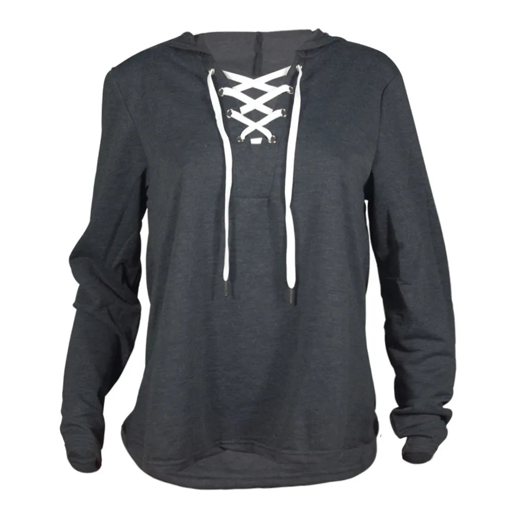 Women Hoodie Sweatshirt Lace Up Long Sleeve Crop Top Coat Sports Pullover Tops