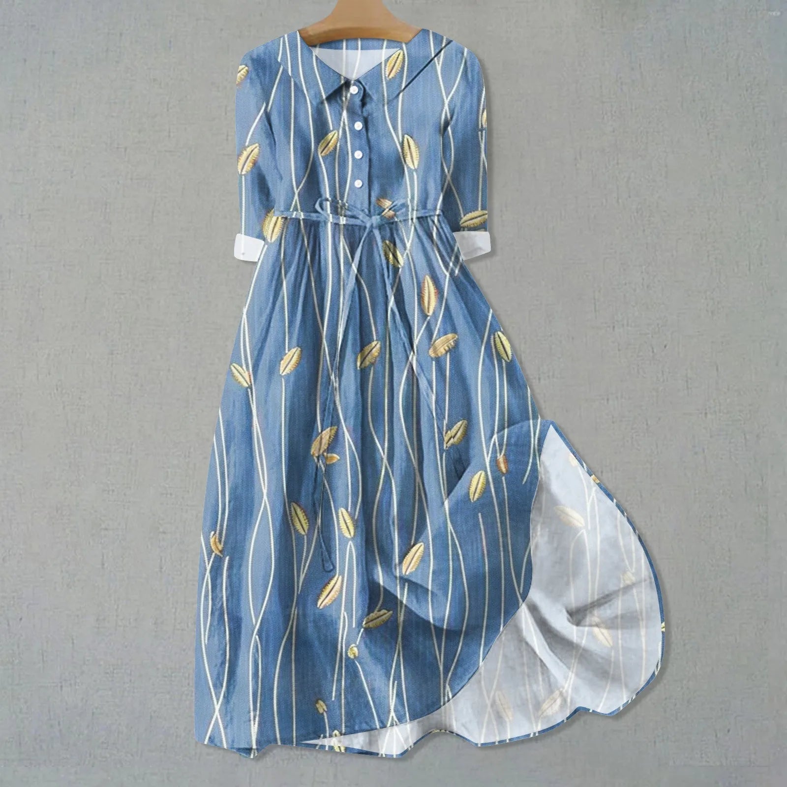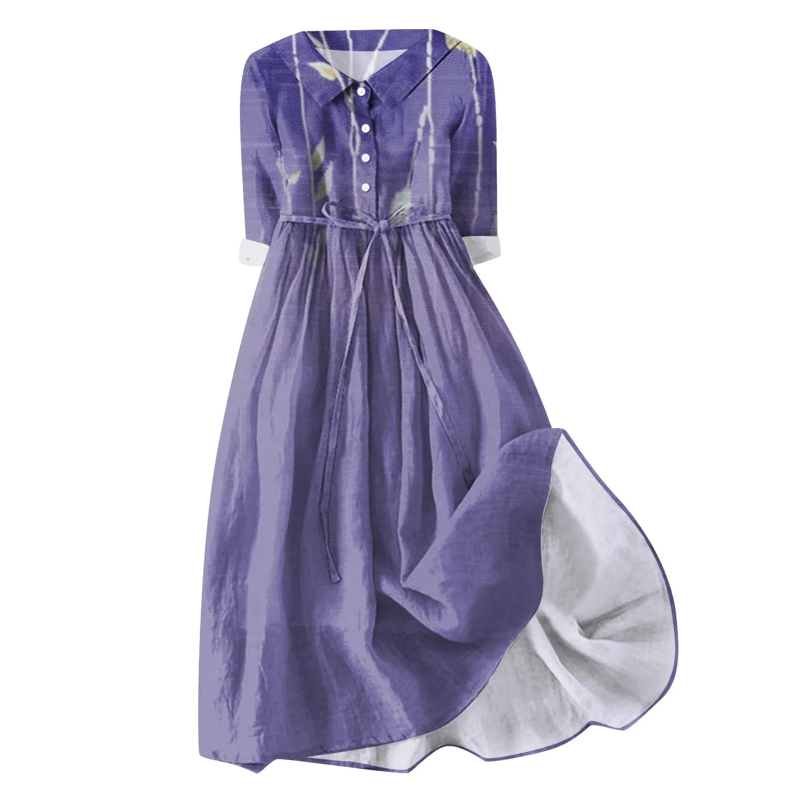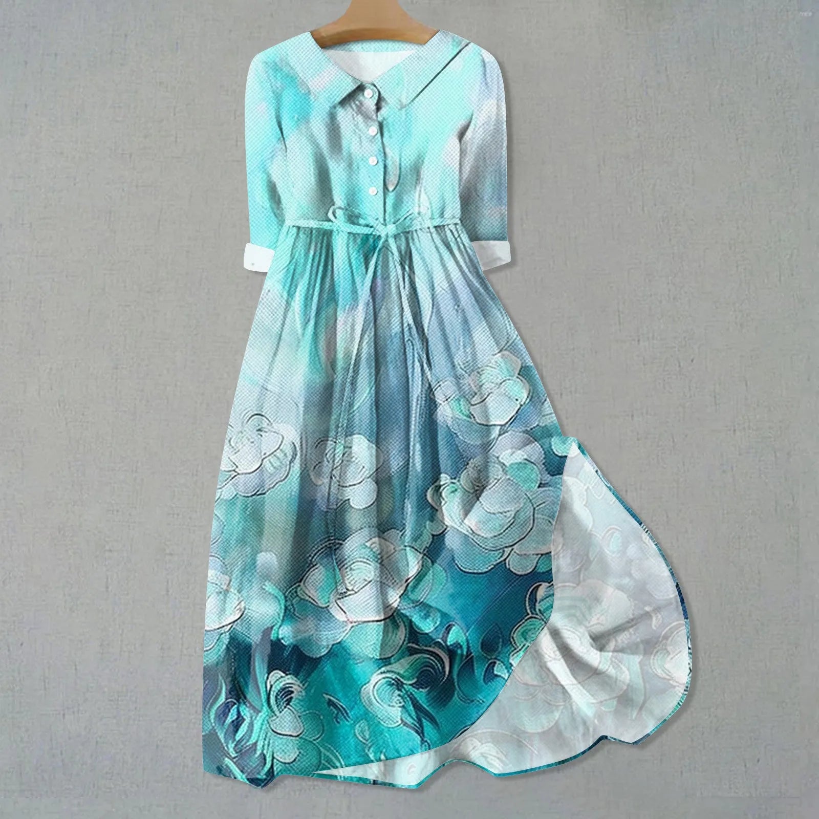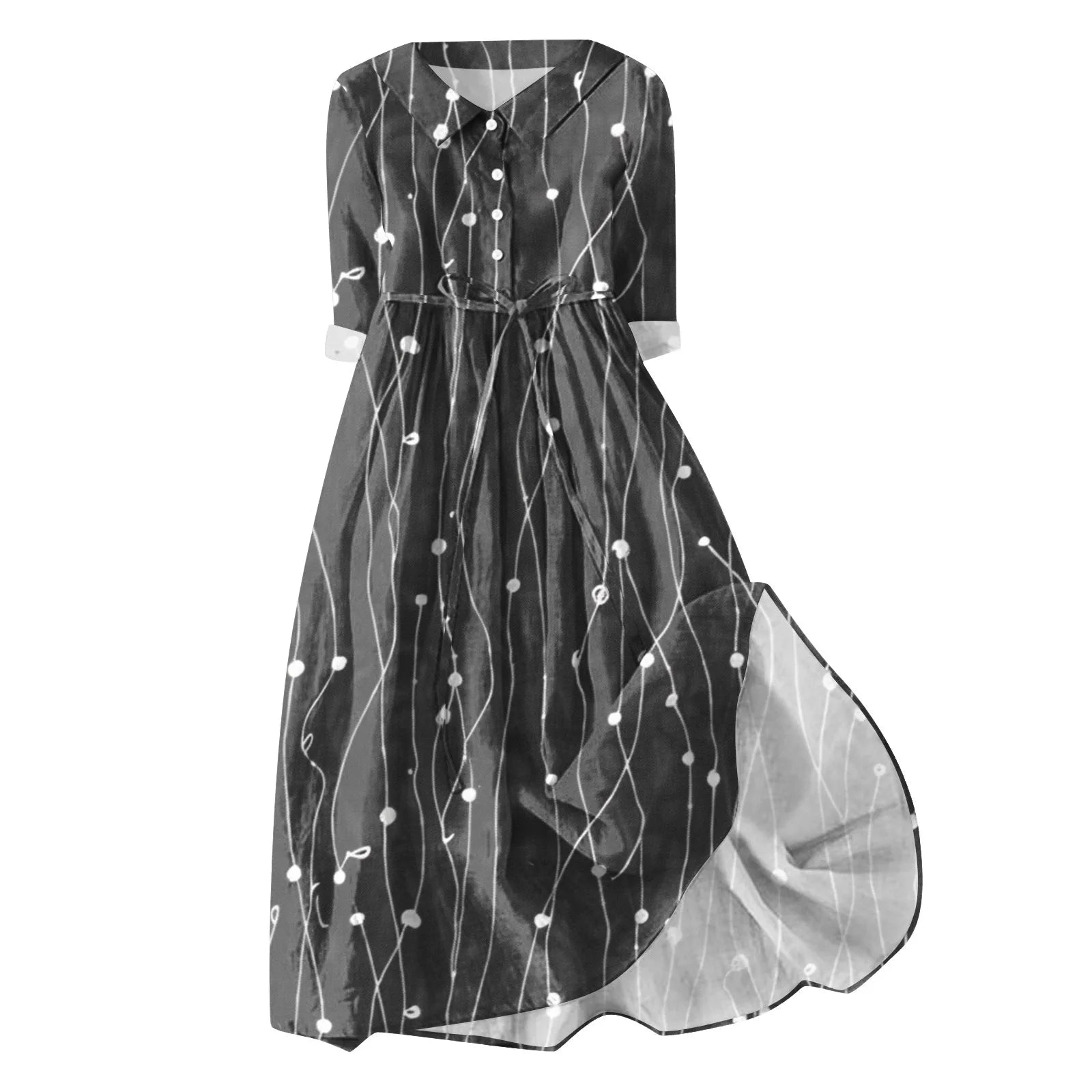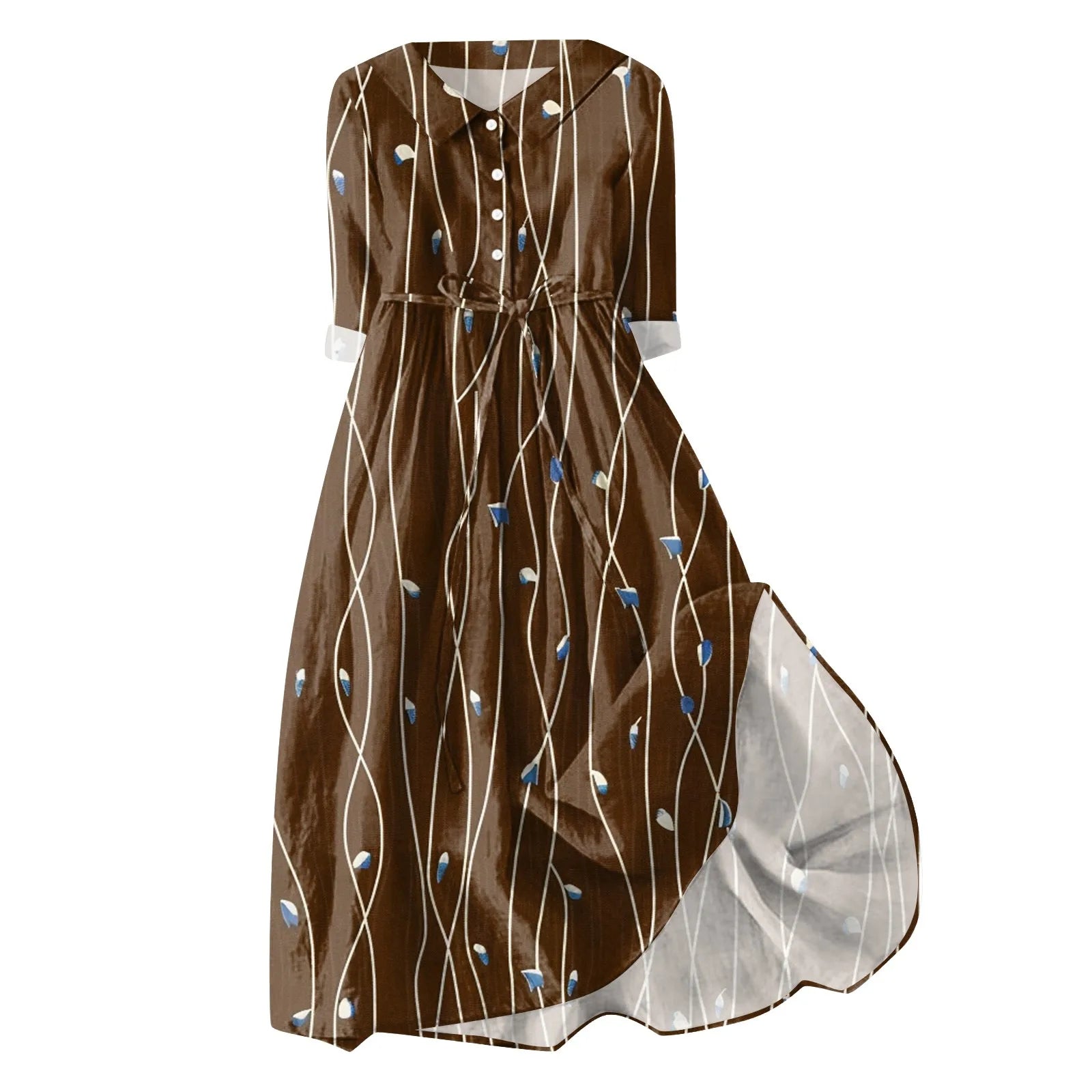 Loose Women Dress Women Bohemian Summer Dress Long Sleeve Plain Floral A Line Dresses Maxi Button Up Size 1 Cocktail Dresses