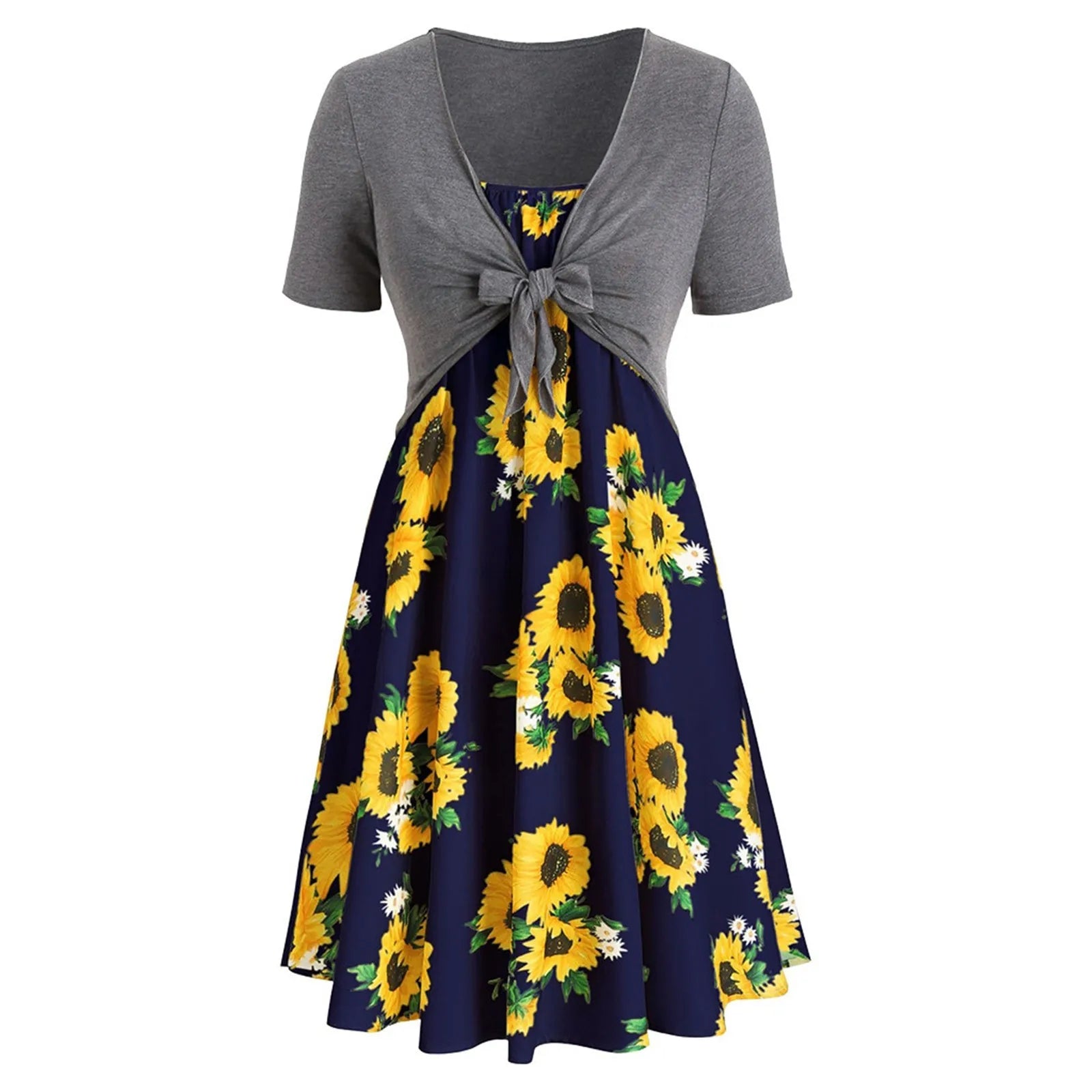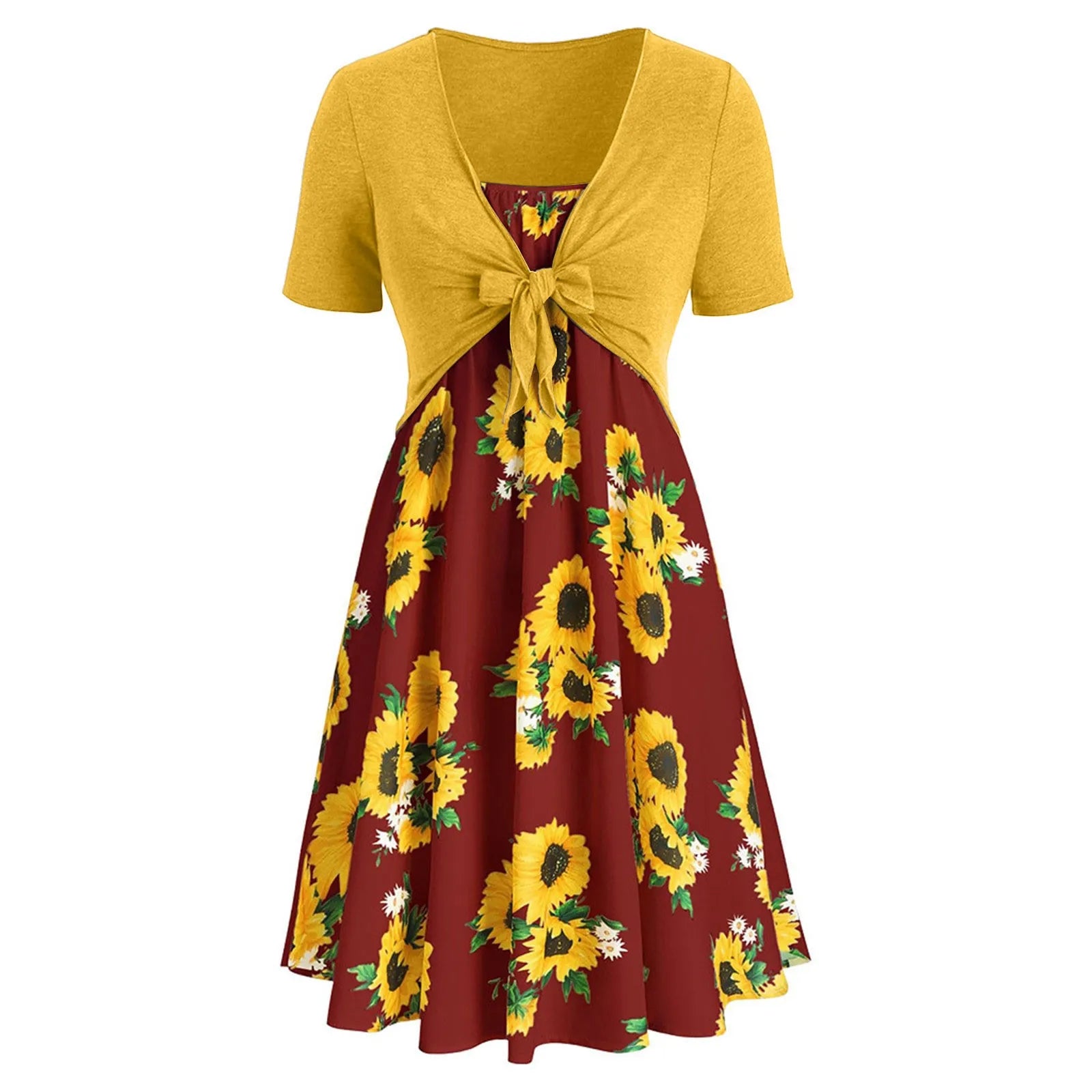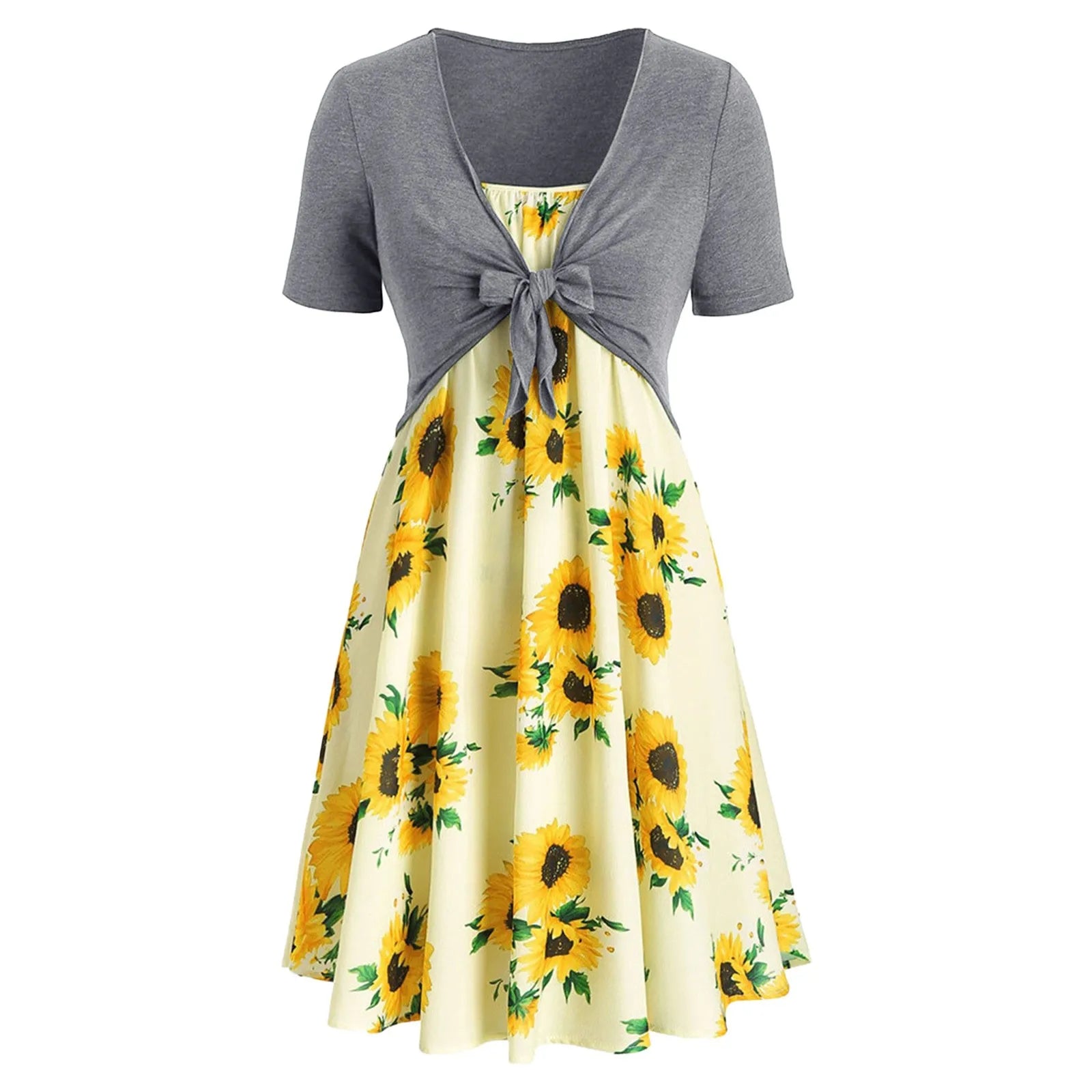 Beach Dresses For Women Two Piece Outfits Fashion Bowknot Bandage Top Sunflower Plus Size Dresses