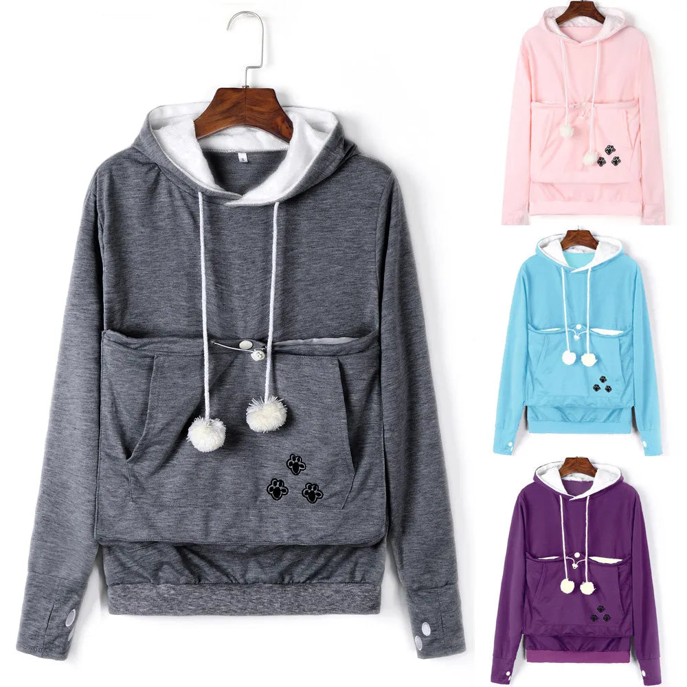 Pet Dog Cat Holder Coat Pouch Large Pocket Hoodie Top Features: Material:Polyester Pattern Type:Solid Gender:Women 1 Occasion:Daily,Casual,Sport Product Description: Season:Autumn,Winter