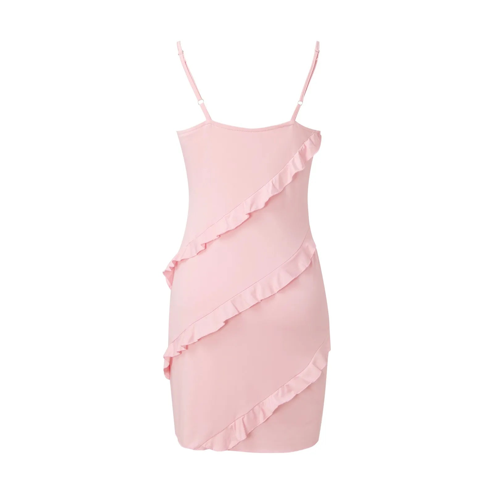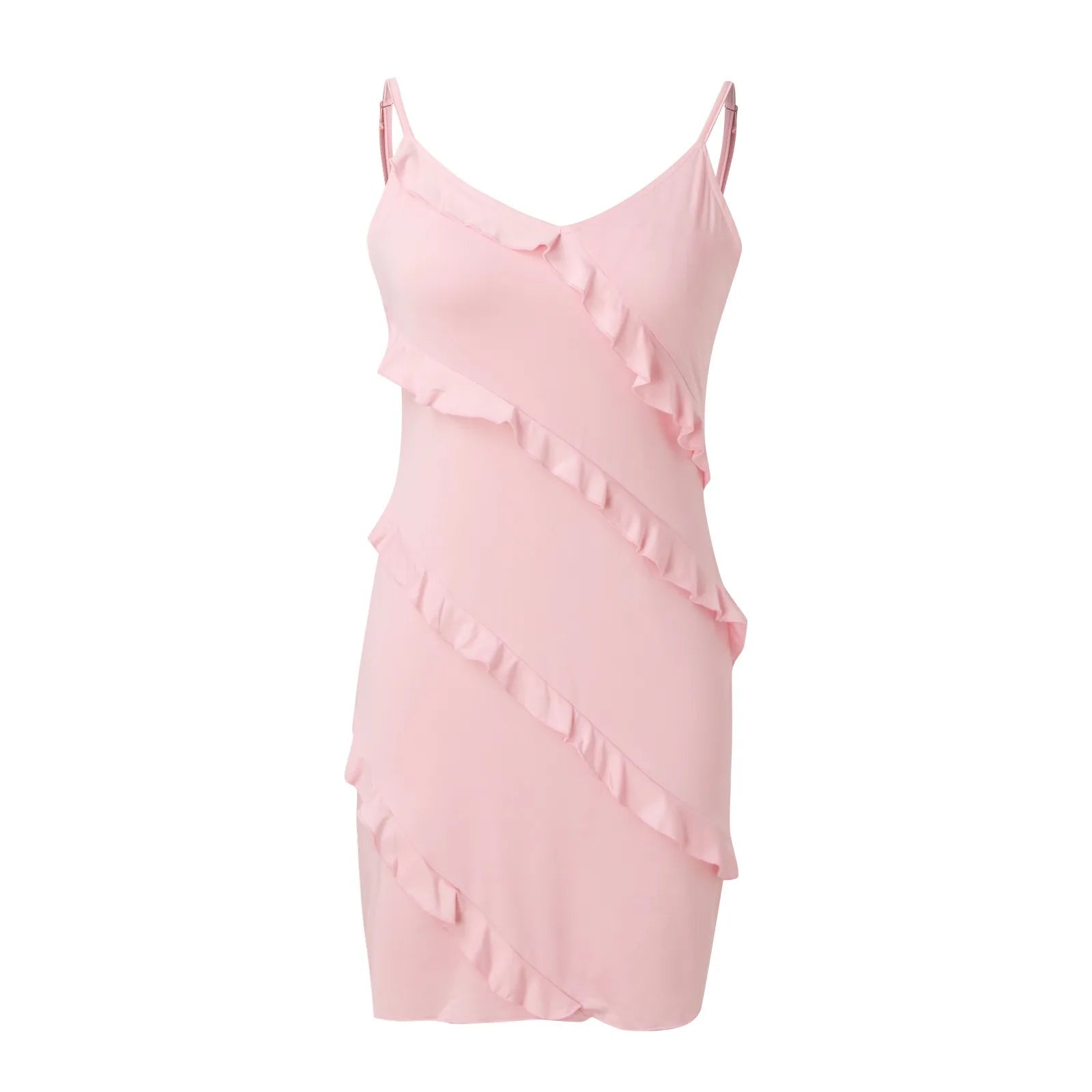 Spaghetti Strap Dresses For Women Midi Length Sexy Back Slim Sleeveless Dress Ruffled Mini Party Low Cut Dress Vestido Feminino