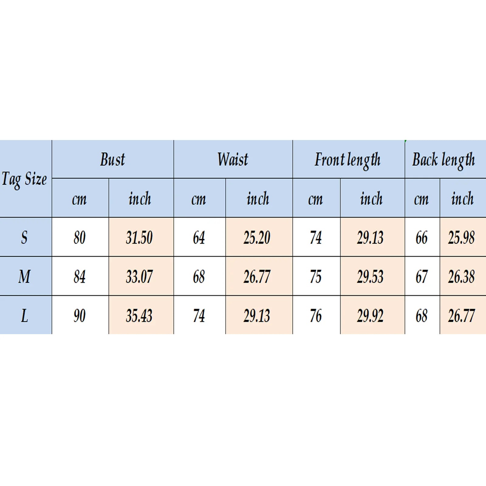Size bust Waist Front Length Back Length S 80cm/31.50'' 64cm/25.20'' 74cm/29.13'' 66cm/25.98'' M 84cm/33.07'' 68cm/26.77'' 75cm/29.53'' 67cm/26.38'' L 90cm/35.43'' 74cm/29.13'' 76cm/29.92'' 68cm/26.77'' Size:S bust:80cm/31.50'' Waist:64cm/25.20'' Front Length:74cm/29.13'' Back Length:66cm/25.98'' Size:M bust:84cm/33.07'' Waist:68cm/26.77'' Front Length:75cm/29.53'' Back Length:67cm/26.38'' Size:L bust:90cm/35.43'' Waist:74cm/29.13'' Front Length:76cm/29.92'' Back Length:68cm/26.77''