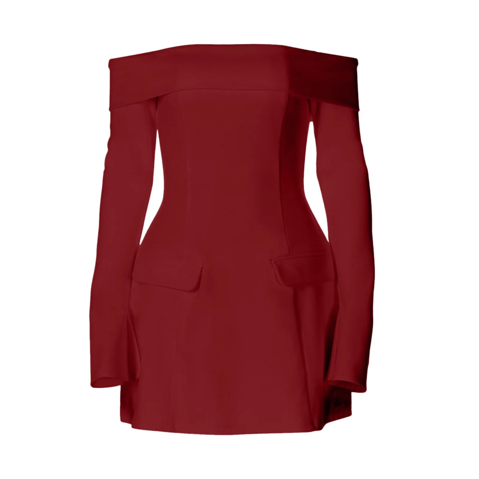 Women Sexy Mini Dress Off Shoulder Long Sleeve Dress Line Dress Short Formal Dress Party Club Outfit