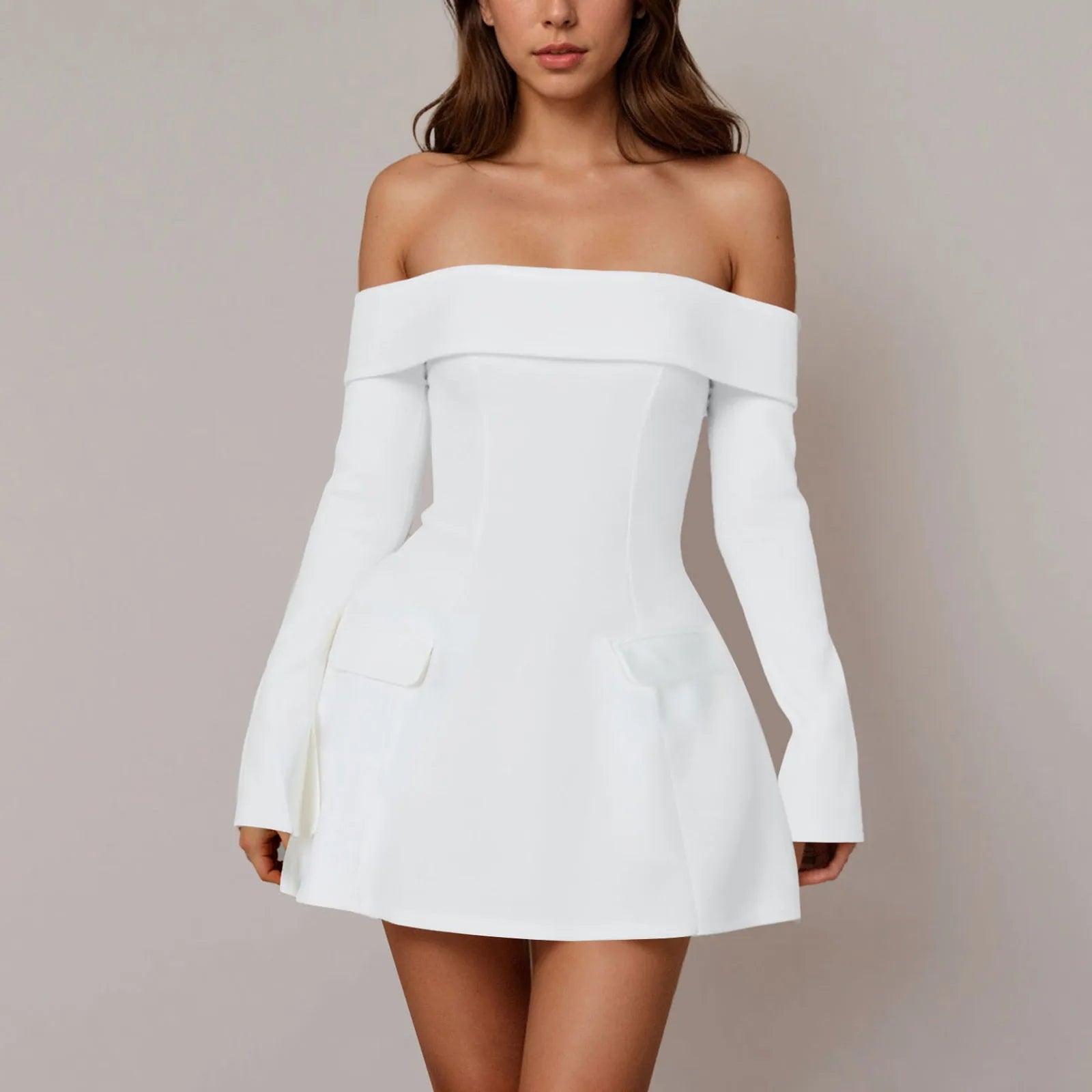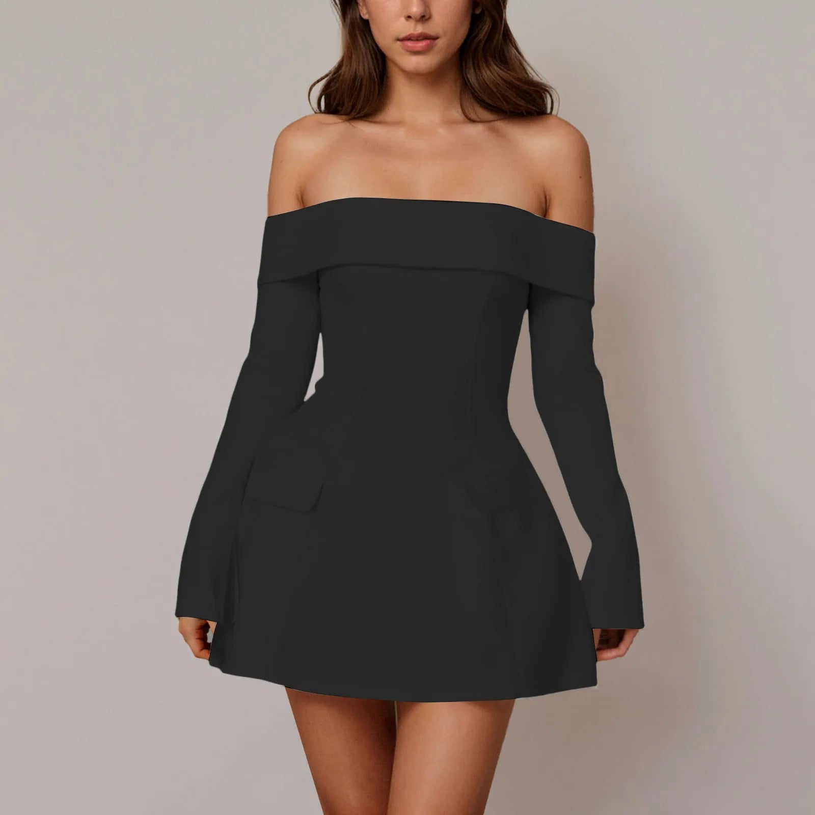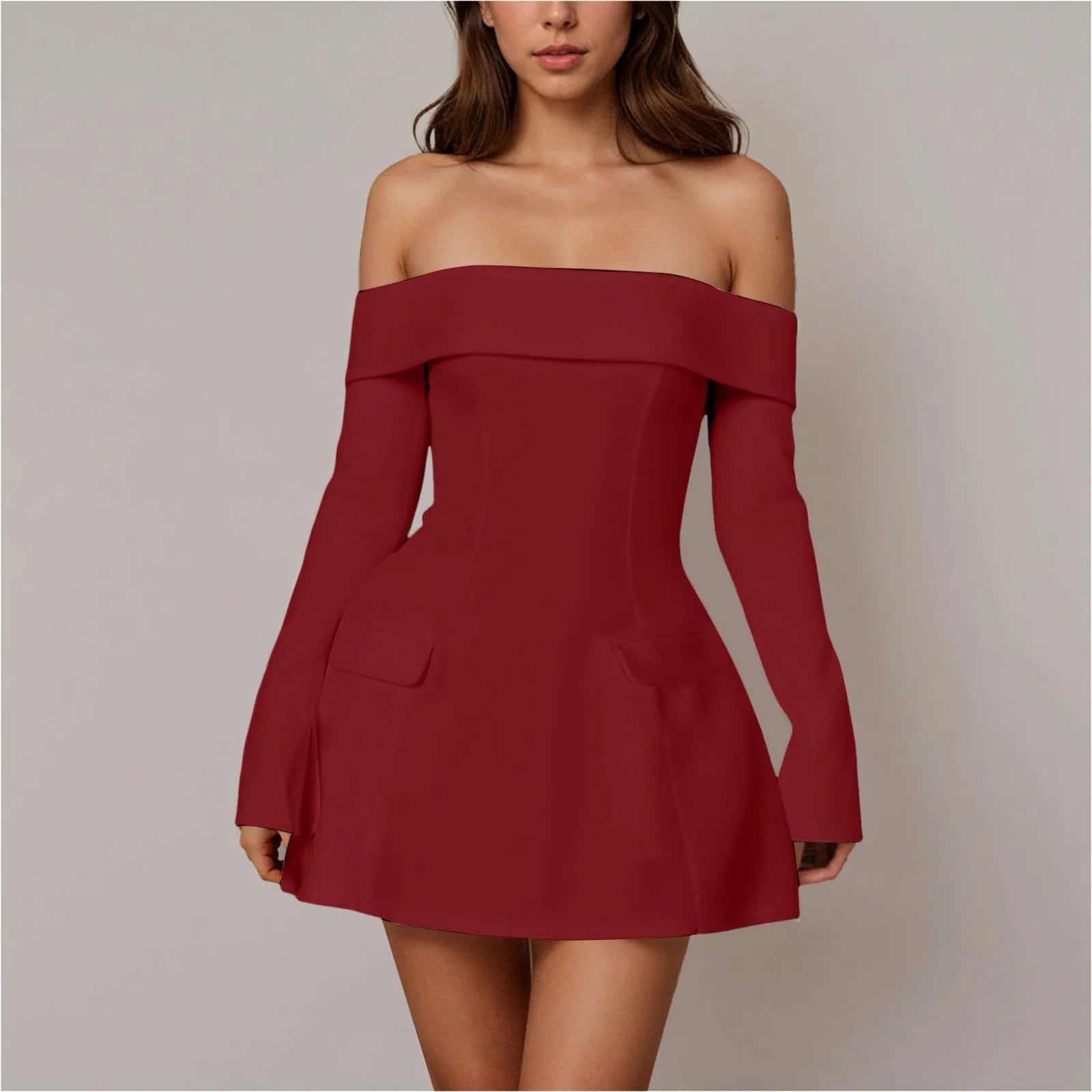 Summer Party Dress Women Sexy Mini Dress Off Shoulder Long Sleeve Dress Line Dress Short Formal Casual Dresses For Women Midi