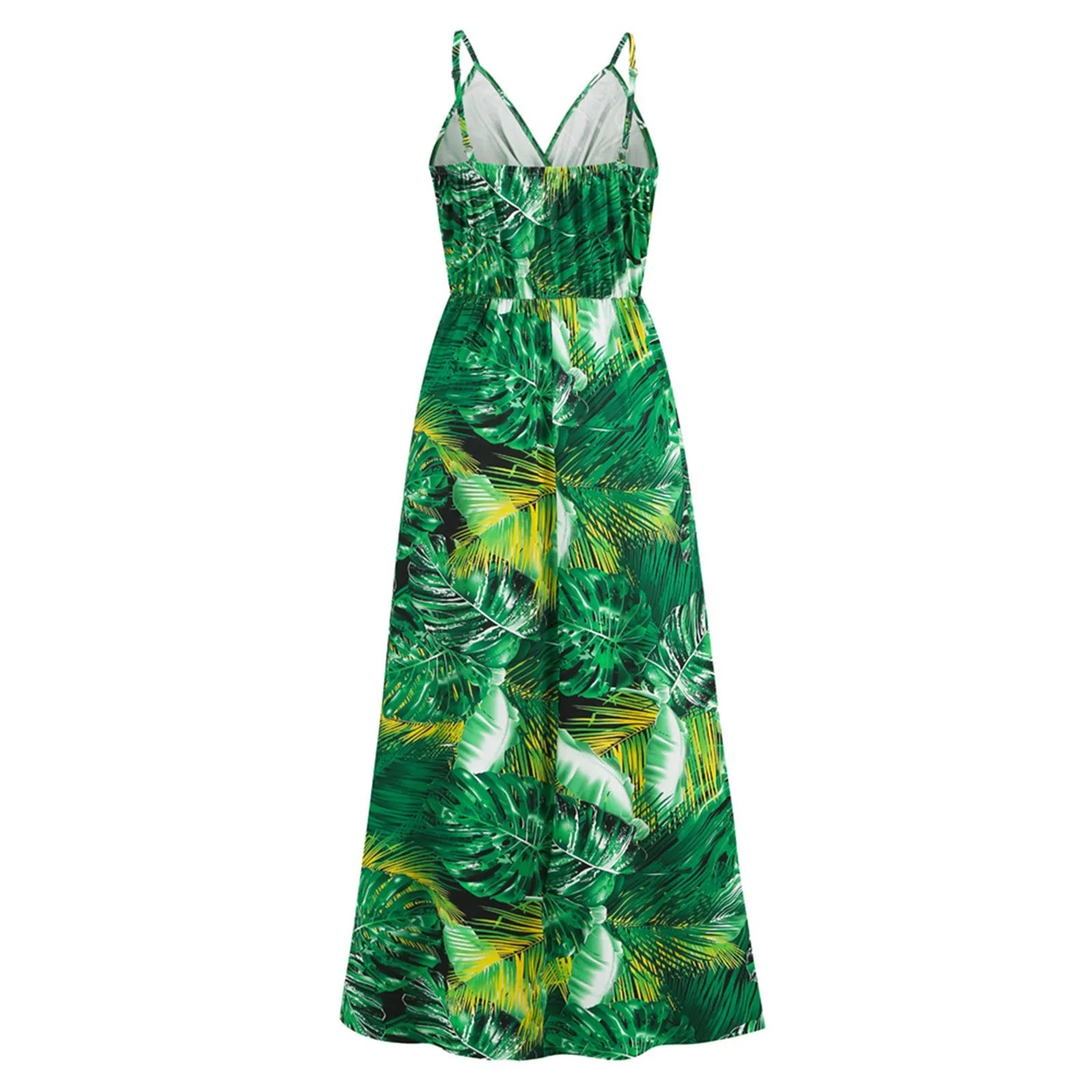 V Neck High Waist Maxi Dresses Womens Summer 2025 Sexy Elegant Long Dress Floral Sleeveless Spaghetti Strap Vacation Dress