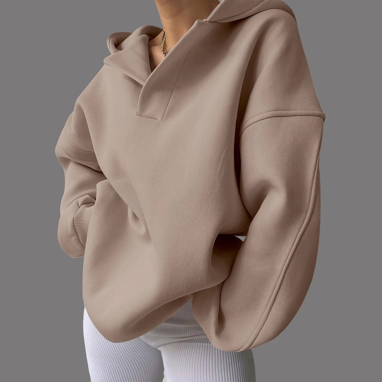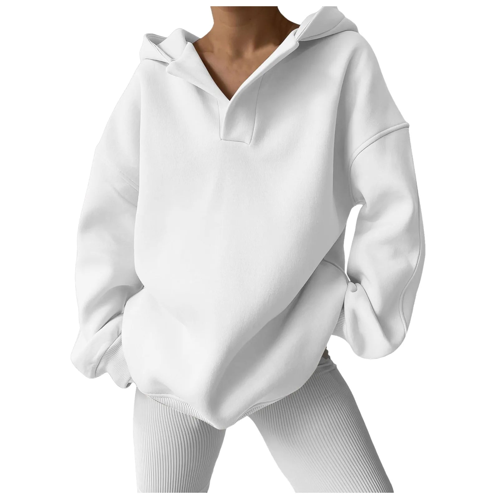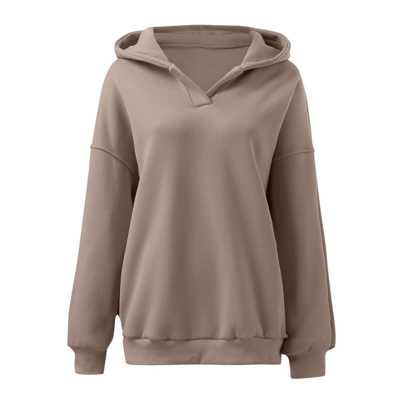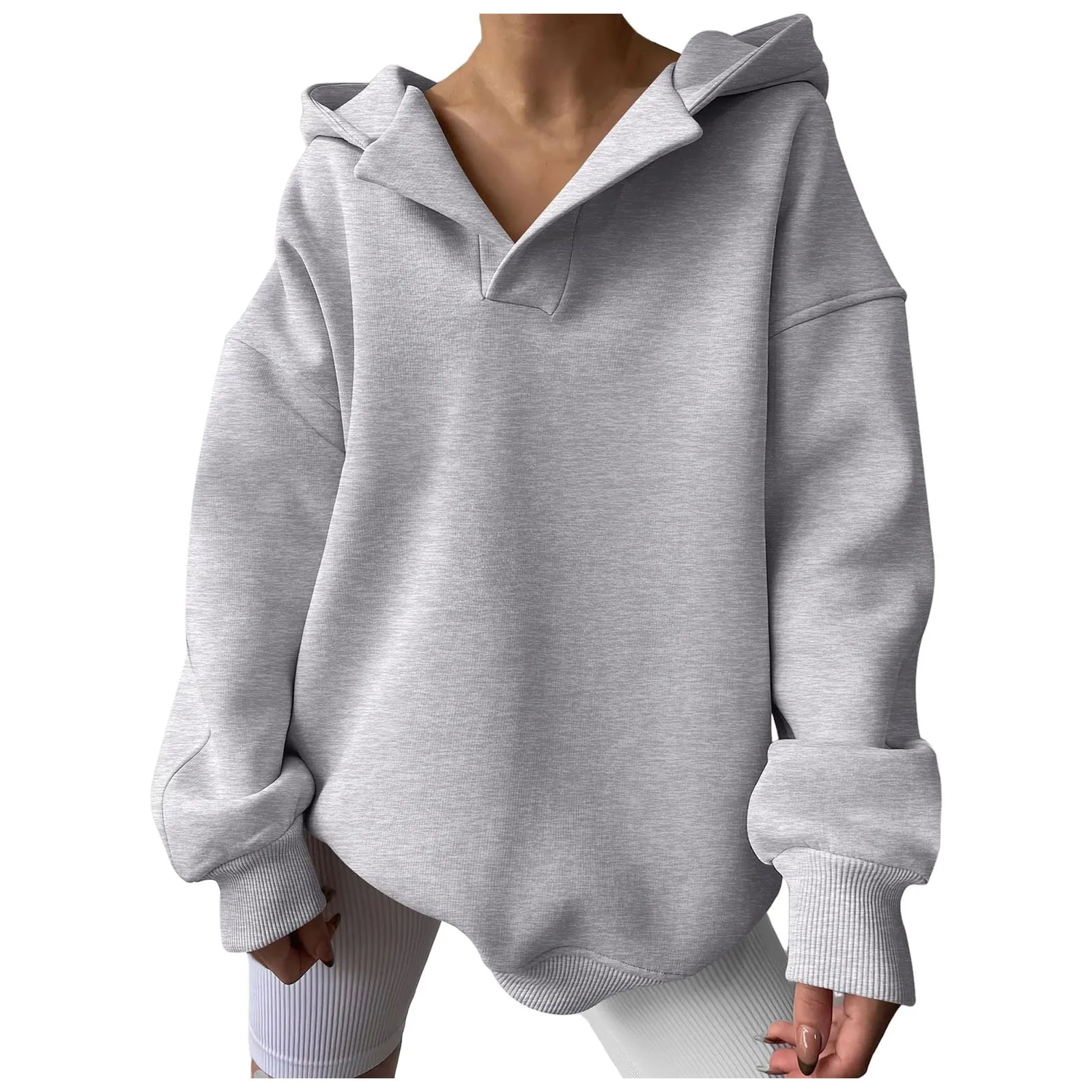 Women's V Neck Oversized Hoodie With Pocket Classic Fleece Lined Sweatshirt
