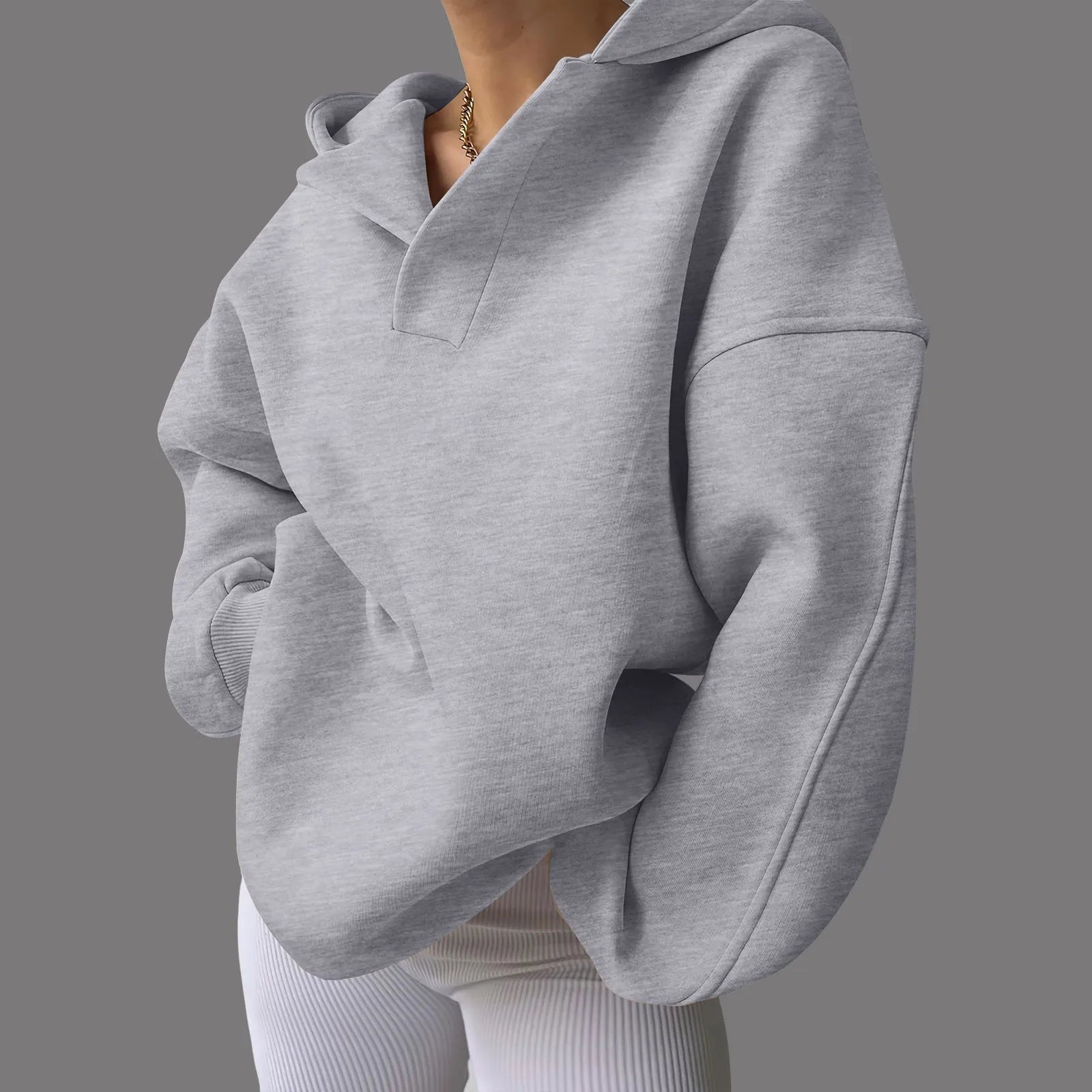 V Neck Oversized Hoodie With Pocket Classic Fleece Y2k Clothing High Street Sweatshirts Round Neck Vintage Outerwear Ropa Barata