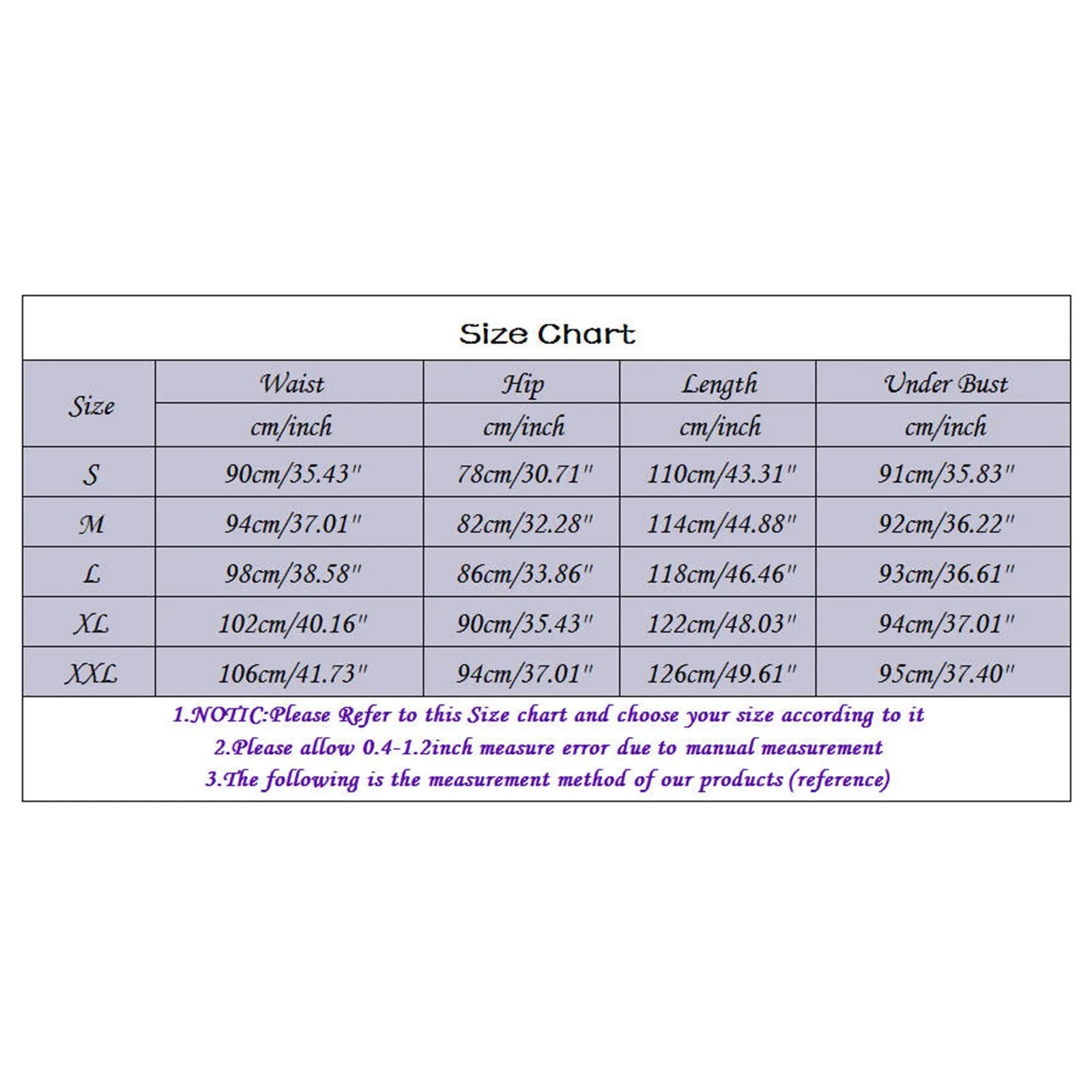 Size Bust Waist Hip Length S 90cm/35.43'' 78cm/30.71'' 110cm/43.31'' 91cm/35.83'' M 94cm/37.01'' 82cm/32.28'' 114cm/44.88'' 92cm/36.22'' L 98cm/38.58'' 86cm/33.86'' 118cm/46.46'' 93cm/36.61'' XL 102cm/40.16'' 90cm/35.43'' 122cm/48.03'' 94cm/37.01'' XXL 106cm/41.73'' 94cm/37.01'' 126cm/49.61'' 95cm/37.40'' Size:S Bust:90cm/35.43'' Waist:78cm/30.71'' Hip:110cm/43.31'' Length:91cm/35.83'' Size:M Bust:94cm/37.01'' Waist:82cm/32.28'' Hip:114cm/44.88'' Length:92cm/36.22'' Size:L Bust:98cm/38.58'' Waist:86cm/33.86'' Hip:118cm/46.46'' Length:93cm/36.61'' Size:XL Bust:102cm/40.16'' Waist:90cm/35.43'' Hip:122cm/48.03'' Length:94cm/37.01'' Size:XXL Bust:106cm/41.73'' Waist:94cm/37.01'' Hip:126cm/49.61'' Length:95cm/37.40''