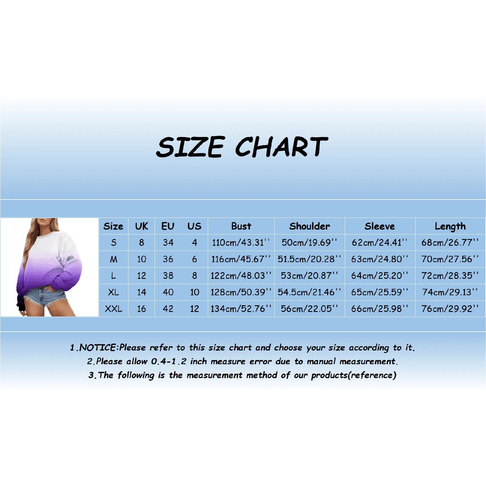 Size UK EU US Bust Shoulder Sleeve Length S 8 34 4 110cm/43.31'' 50cm/19.69'' 62cm/24.41'' 68cm/26.77'' M 10 36 6 116cm/45.67'' 51.5cm/20.28'' 63cm/24.80'' 70cm/27.56'' L 12 38 8 122cm/48.03'' 53cm/20.87'' 64cm/25.20'' 72cm/28.35'' XL 14 40 10 128cm/50.39'' 54.5cm/21.46'' 65cm/25.59'' 74cm/29.13'' XXL 16 42 12 134cm/52.76'' 56cm/22.05'' 66cm/25.98'' 76cm/29.92'' Size:S UK:8 EU:34 US:4 Bust:110cm/43.31'' Shoulder:50cm/19.69'' Sleeve:62cm/24.41'' Length:68cm/26.77'' Size:M UK:10 EU:36 US:6 Bust:116cm/45.67'' Shoulder:51.5cm/20.28'' Sleeve:63cm/24.80'' Length:70cm/27.56'' Size:L UK:12 EU:38 US:8 Bust:122cm/48.03'' Shoulder:53cm/20.87'' Sleeve:64cm/25.20'' Length:72cm/28.35'' Size:XL UK:14 EU:40 US:10 Bust:128cm/50.39'' Shoulder:54.5cm/21.46'' Sleeve:65cm/25.59'' Length:74cm/29.13'' Size:XXL UK:16 EU:42 US:12 Bust:134cm/52.76'' Shoulder:56cm/22.05'' Sleeve:66cm/25.98'' Length:76cm/29.92''