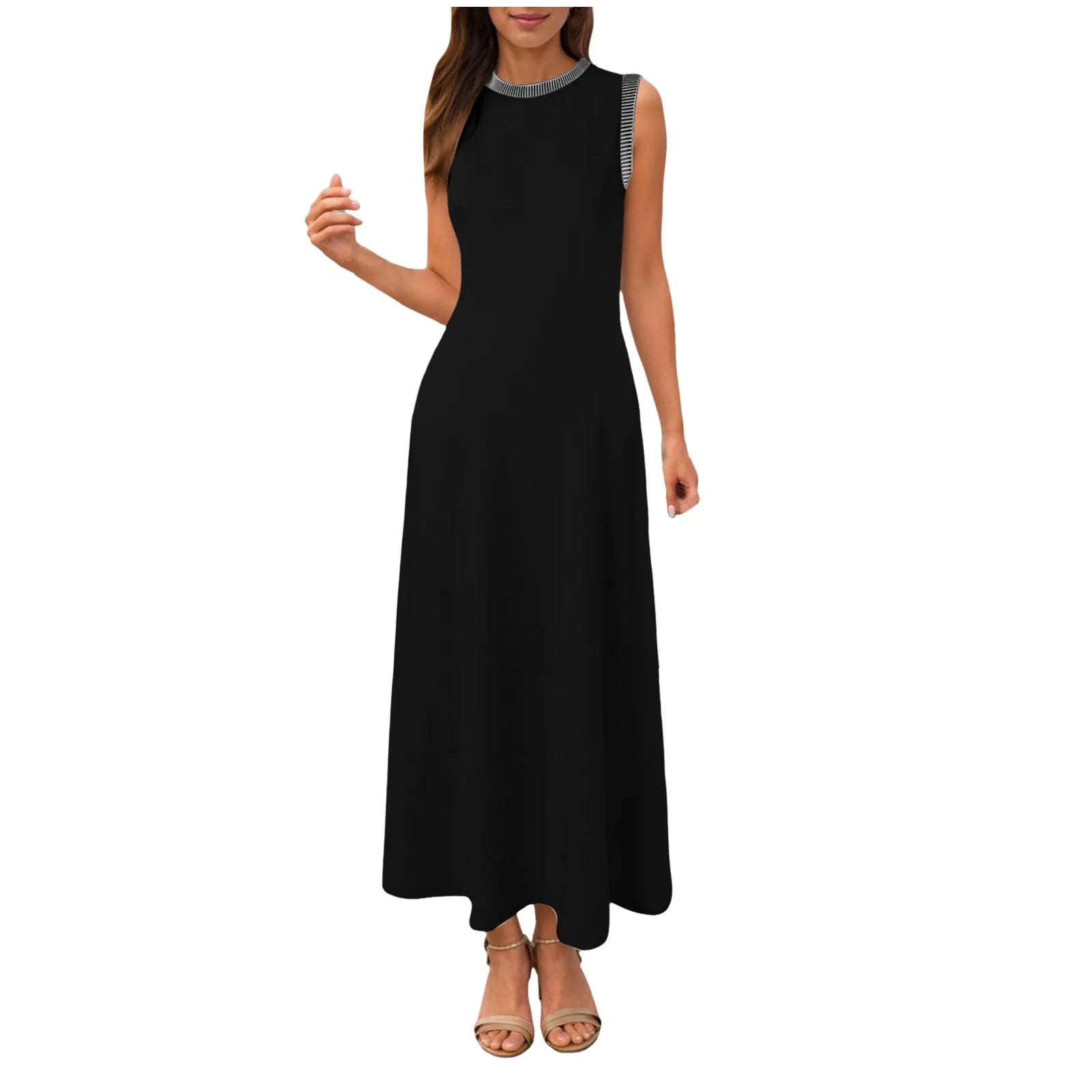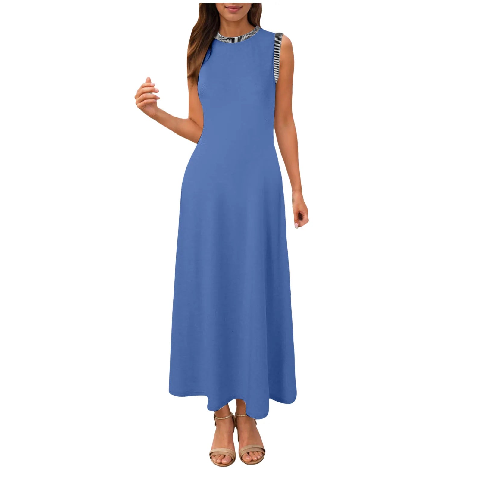 Women Summer Outfits Women Spring Summer Casual Beach Vest Dress Vacation Sleeveless Vest Round Womens Winter Casual Dresses